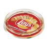 Model PG4 ist als eine runde Geldschale ausgeführt und besteht aus der unteren Kunststoff-Unterlage und der oberen Rahmenfassung, die ein gebogenes schlagfestes Glas darstellt. Die Elemente werden aneinender gefestigt und fixieren die Werbeetikette in der Geldschale. Dieses Model steht sicher auf dem Tresen, dank den auf der Unterlage angebrachten rutschfesten Füßen.
