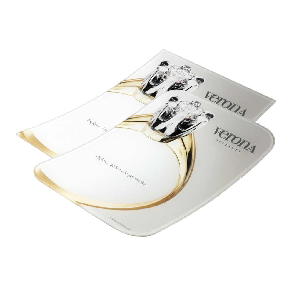 GLC Sticker 150x210 - rechteckiger Glas-Zahlteller. Die Modelle der GLC-Serie sind aus einem festen gekrümmten Glas angefertigt. Auf die Rückseite vom Zahlteller wird eine Werbeetikette geklebt, die sicher gegen Kratzer und Beschädigungen schützt. Die Ecken vom Zahlteller können abgerundet sein. Die Beständigkeit auf dem Kassentisch wird durch 4 rutschfeste Füße sichergestellt.